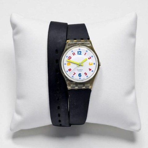 Különleges hosszúbőrszíjas Swatch vintage karóra, új minőségi elemmel és kifogástalan működéssel! Márka: Swatch Tipus: LS106 (Vintage 2003-as) Számlap színe: Fehér Tok színe: Átlátszó / Fehér Csomagolás: Csak az óra! Maximális