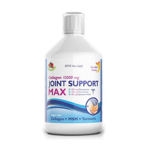 SWEDISH NUTRA JOINT SUPPORT MAX - CUKORMENTES ÍZÜLETVÉDŐ FOLYÉKONY KOLLAGÉN A Swedish Nutra Joint Support MAX ízületvédő ital II-es típusú, hidrolizált szarvasmarha kollagén tartalmának köszönhetően enyhíti az ízületi panaszokat és hozzájárul a porcok