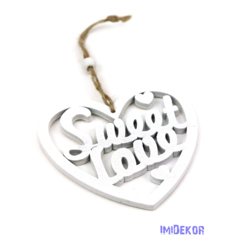Sweet Love akasztós szív 10x9,5cm - Fehér