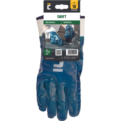 SWIFT kesztyű nitril akasztófül - 10 • kötött pamutkelméből varrt, nitrilbe teljesen mártott kék kesztyű merev mandzsettával
