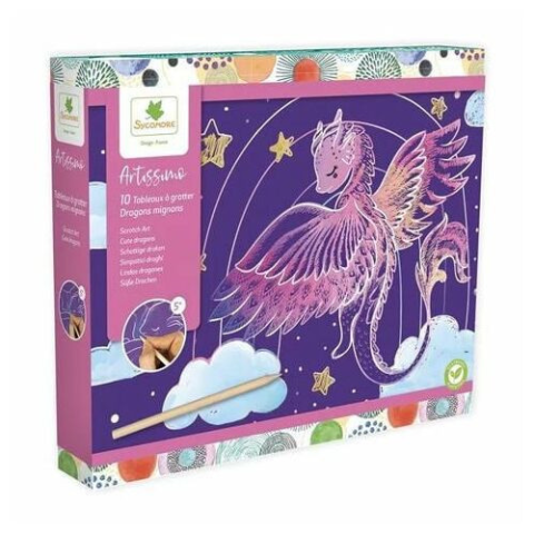 Léteznek aranyos, békés, cuki sárkányok? Bizony léteznek. 10db karckép van ebben a kreatív szettben, és mindegyik kép egy ilyen sárkányt ábrázol.