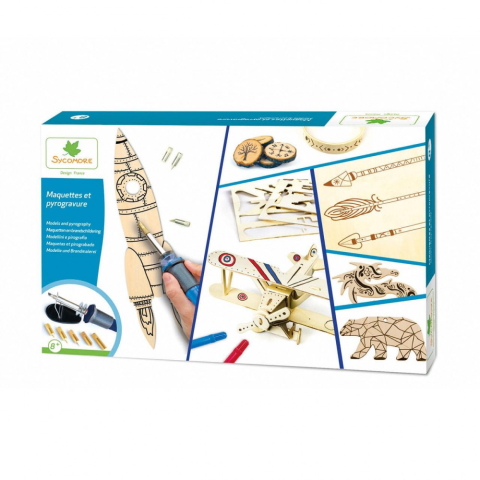 Készíts ezzel a Sycomore pirográf technika - fiús szettel kiváló modelleket! Az elkészült művek bármely szoba különlegesen szép díszei lehetnek, de ajándéknak is tökéletesek. A készlet tartalma: -1db famegmunkáló eszköz -5 db cserélhető fej az eszközhöz -