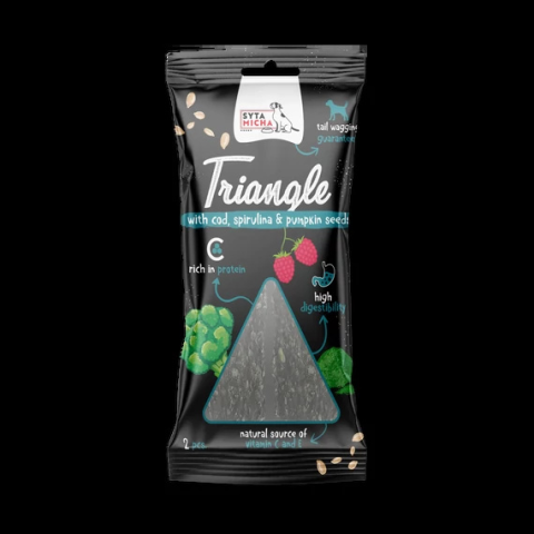 1 kép Syta Micha fogtisztító rágóka kutyáknak tőkehallal, szarvassal és spirulinával 13cm - 2db