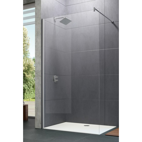 Oldalfal szabadon álló Design pure, szélesség 120 cm x magasság 200 cm, profil fényes króm, átlátszó üveg Antiplakk