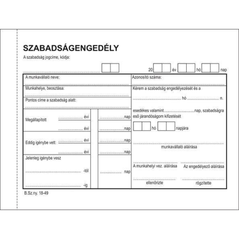1 kép Szabadságengedély – 50 lapos, 3 példány, A/6 nyomtatvány - Féldoboz