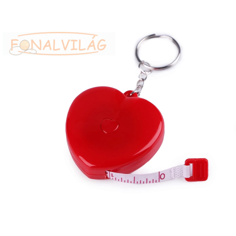 Szív alakú automata szabó centi, kulcskarikán. Mérete: 5x5cm