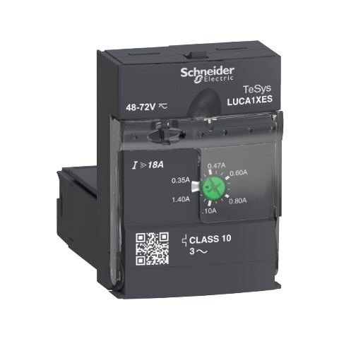 Vezérlőegység, 0,35-1,4A, 48-72VAC/DC, 10-es osztályú, 3-fázisú LUCA1XES Schneider \nSzabványos vezérlőegység LUCA, 10-es osztály, 0,35...1,4A, 48...72 V DC/AC. termékcsalád: TeSys - termék neve: TeSys U - készülék rövid megnevezése: LUCA - termékspecif