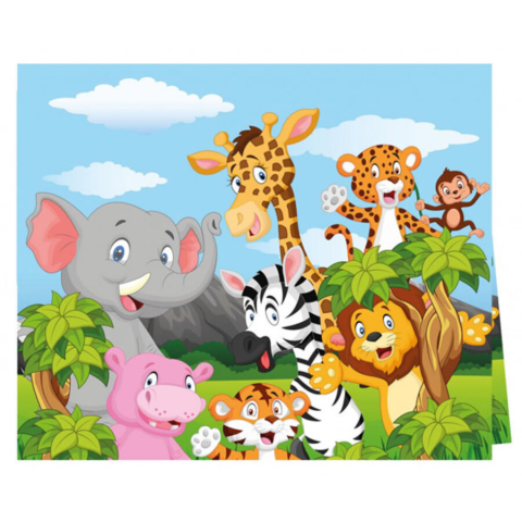 Eldobható, műanyag asztal terítő. szafari mintával. Mérete: 120*180 cm.