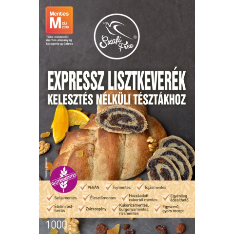 Szafi Free EXPRESSZ lisztkeverék kelesztés nélküli tésztákhoz 1000 g Gluténmentes, tejmentes, tojásmentes, szójamentes, élesztőmentes kelesztés nélküli édes és sós „kelt” tészták készíthetőek a lisztkeverék segítségével, pillanatok alatt. Élelmi rostokba