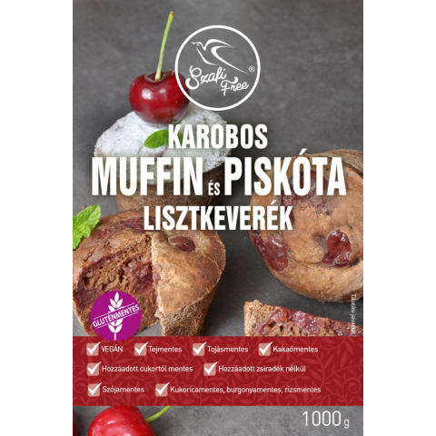 Szafi Free Karobos muffin és piskóta lisztkeverék 1000 g Kakaómentes, gluténmentes, tejmentes, tojásmentes, hozzáadott cukortól mentes, szójamentes, kukoricamentes, burgonyamentes, rizsmentes, sütőpormentes lisztkeverék alap, hozzáadott zsiradéktól men