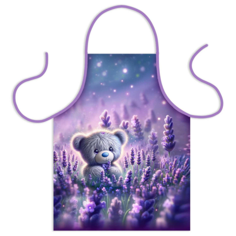 Konyhai kötény aranyos maci és levendula mintával Befogó méretei: 50 x 70 cm Anyaga: 100% polyester A minta nem fakul, nem kopik a mosástól