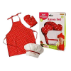 Szakács szett (piros), kötény. 3 részes. Kötény, kesztyű, szakács sapka. Dobozméret:26x19x3,5cm