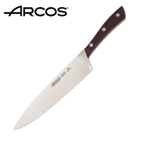 Klasszikus formájú szakács kés modern NITRUM® bevonatú 200 mm-es pengével. A bevonat tartós, hosszan tartó élet biztosít a kovácsolt vas pengének. Gyönyörű és kiváló termék! Előnyösen tervezett, meleg, fa nyél igényeseknek. Nyél: A sorozat szépsége a form