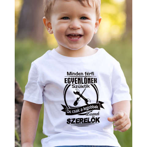 Szakmás gyerek póló, legjobban lesznek szerelők. Ha egy igazán találó ajándékot keresel hobbi autószerelőnek, gépszerelőnek, vagy bármilyen mesterség igazi mesterének, ez a gyerek póló remek választás. A felirat: „Minden férfi egyenlőnek születik, de csak