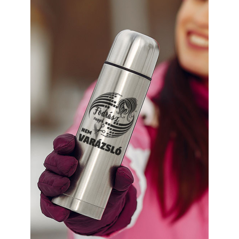 Szakmás termosz, fodrász vagyok nem varázsló. Fodrász vagyok nem varázsló felirattal, télen és nyáron is kitűnő választás. Meglepetés szakmás termosz fodrászod számára vagy családtagod, barátod születésnapjára, karácsonyra. Anyaga rozsda mentes acél és mű