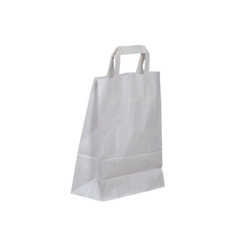 Ez a szalagfüles papírtáska (22x28+10 cm) fehér kivitelben kapható. A nyomatlan táska előnye, hogy minden vállalat arculatához megfelel, ugyanakkor utólag is módosítható. A szalagfül elég erős ahhoz, hogy ne szakadjon el a rendszeres használat során sem, így nagyszerű marketingeszközzé válik, amit a vásárlók örömmel visznek magukkal. A műanyaghoz képest igényesebb megjelenést biztosít, ami a cég színvonalát is tükrözi. A szalagfüles papírtáska (22x28+10 c