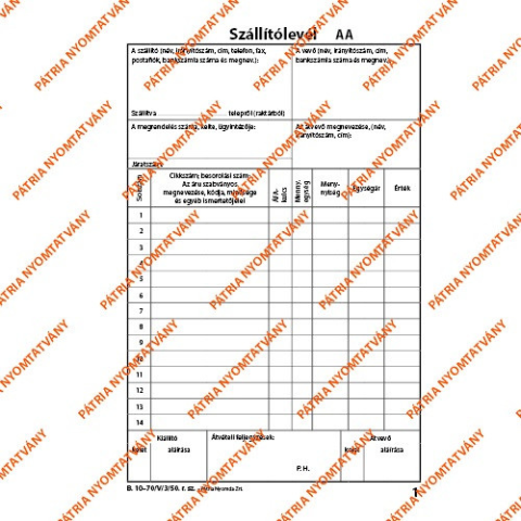 Szállítólevél 50x3 lapos tömb A/5 álló szállítmányok hivatalos, sorfolytonos számozással ellátott hivatalos okmánya, amellyel igazolható az átvétel50 x 3 lapos tűzött tömbméret: A/5 állókarton borító, perforált, önindigós belívek