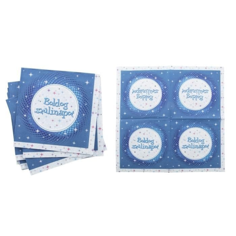 Szalvéta, 3 rétegű, 33x33cm, "Boldog Születésnapot", kék, 16db/cs