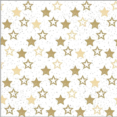 Három rétegű, 33x33 cm-es méretű dekorszalvéta dekupázs-technikához, arany csillagok