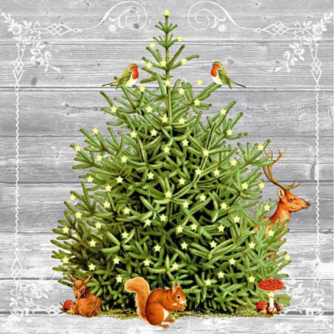 Szalvéta – erdei karácsonyfa állatokkal papírárú, csomagoló és tárolóeszköz 1 kép