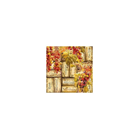 33x33 cm-es, három rétegű dekorszalvéta decoupage-technikához, Szőlő és parafadugó
