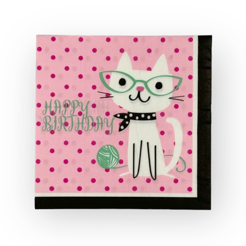 1 kép Szalvéta, Happy Birthday, cica, pink-fekete, 33×33cm, 16db