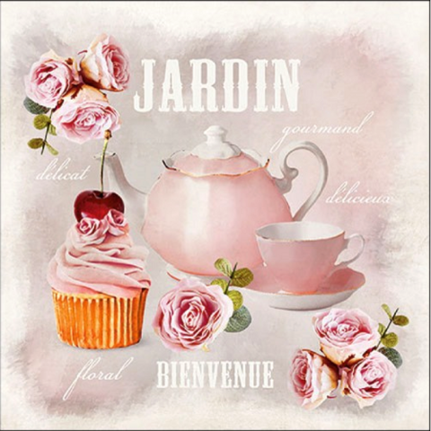Három rétegű, 33x33 cm méretű dekorszalvéta dekupázs-technikához, teáskanna és csésze