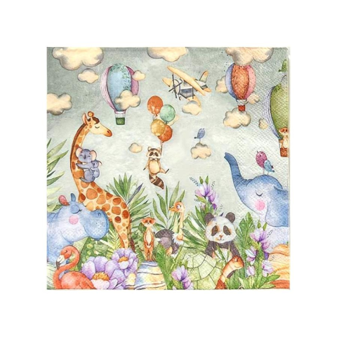 Két rétegű dekorszalvéta, vidáman bulizó álllatokkal.
