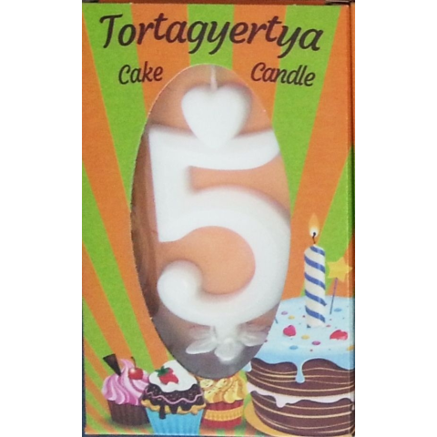 1 kép számgyertya+talp fehér dobozos - "5"