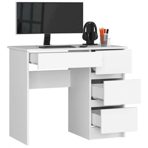 1 kép Számítógép asztal, laminált lap, 4 fiók, jobb, fehér, 90x50x77 cm