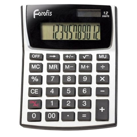 Számológép asztali FOROFIS midi 12 digites Asztali Számológép MIDI - 12 számjegyes képernyő - LR44 elemmel vagy napelemről működtethető - Méretei: 145 x 108 x 20mm