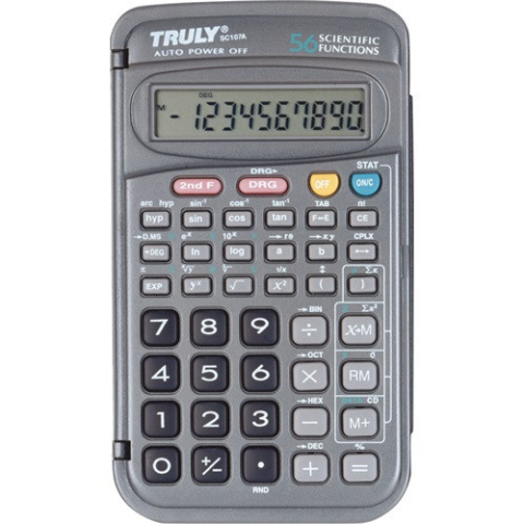 Számológép Truly tudományos SC107A 10 digites tudományos számológép kemény fedéllel, műanyag gombokkal 56 funkciós 2 db gombelemmel működik automata kikapcsolás statisztikai számítás