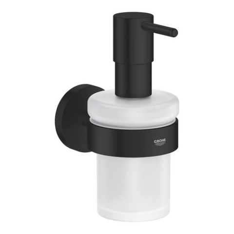 Szappanadagoló fekete matt színű. A GROHE márkájú fürdőszobai kiegészítő szélessége 7,2 cm alapanyaga fém, üveg. Szerelés ragasztással és fúrással.