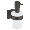 Szappanadagoló fekete matt színű. A GROHE márkájú fürdőszobai kiegészítő szélessége 7,2 cm alapanyaga fém, üveg. Szerelés ragasztással és fúrással.