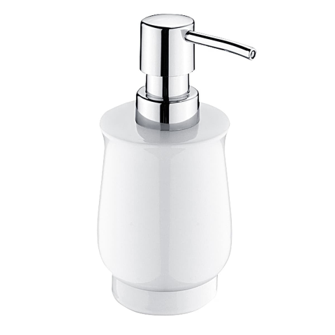 Kerámia adagoló folyékony szappanhoz. Térfogat 300 ml. Műanyag szivattyú. Felületkezelés króm.