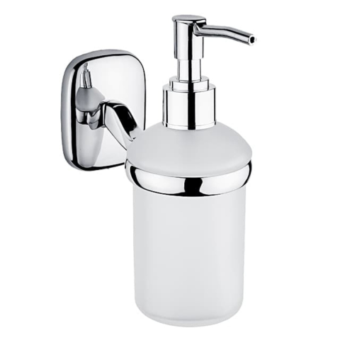 Folyékony szappanadagoló. Műanyag szivattyú felülettel. krómozott kivitelben. Matt üvegedény.
