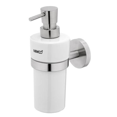 Folyékony szappanadagoló. Fogantyú és szivattyú csiszolt rozsdamentes acél. Kerámia tartály, 300 ml.