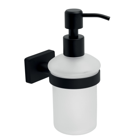 Szappanadagoló fekete matt színű. A Novaservis márkájú fürdőszobai kiegészítő szélessége 8 cm alapanyaga fém, üveg. Szerelés ragasztással és fúrással.