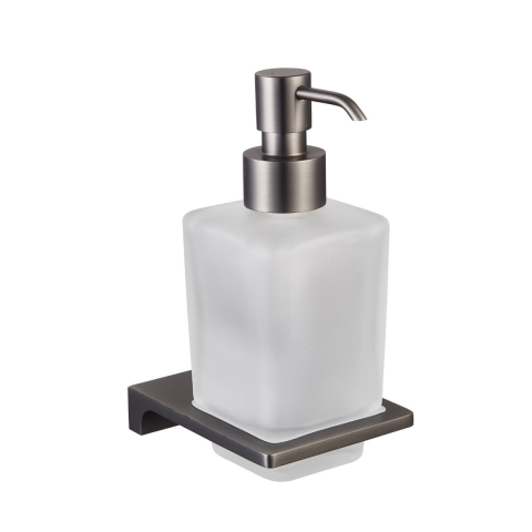 Szappanadagoló fémszürke kivitelben. A RAV SLEZÁK márkájú fürdőszobai kiegészítő szélessége 6,35 cm alapanyaga sárgaréz/üveg. Szerelési mód fúrással.