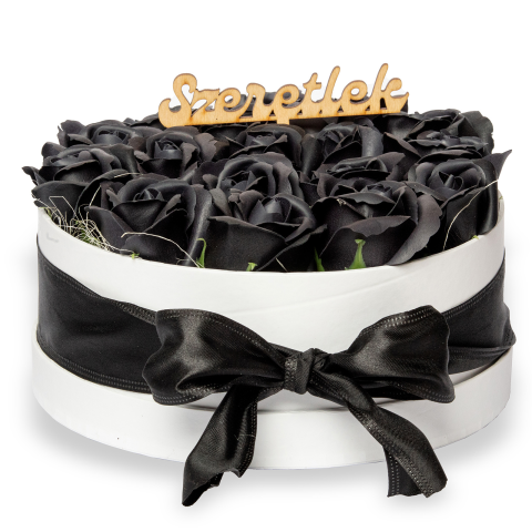 Szappanrózsa box, fehér rózsadoboz - fekete