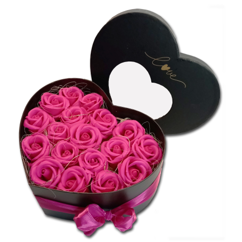 Szappanrózsa szívbox, ablakos rózsadoboz - pink + led világítással szappan árgrafikon