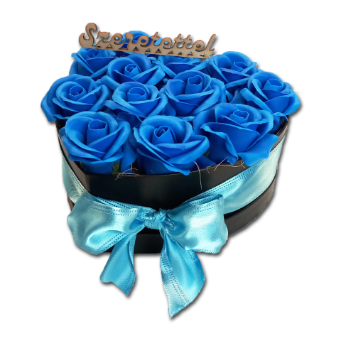 Szappanrózsa szívbox, fekete rózsadoboz - kék szappan árgrafikon