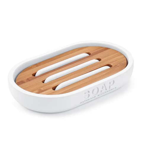 Szappanopera. Fehér színű. Anyaga polirezin, bambuszfa.
