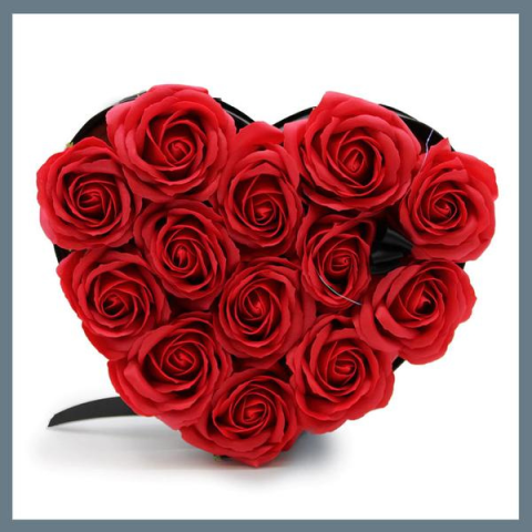 1 kép Szappanvirág ajándékcsokor - 13 piros rózsa - szív alakú GSFB-02
