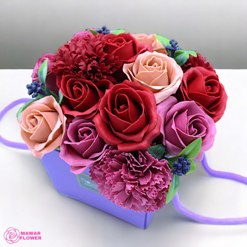 Bájos Szappanvirág Csokor - Lila Virágoskert Engedd, hogy otthonod elbűvöljön ezzel a lenyűgöző Szappanvirág Csokorral - Lila Virágoskert-tel, ahol a lila színek gazdagsága és a romantikus árnyalatok elegyednek. Ez a csokor a békesség és