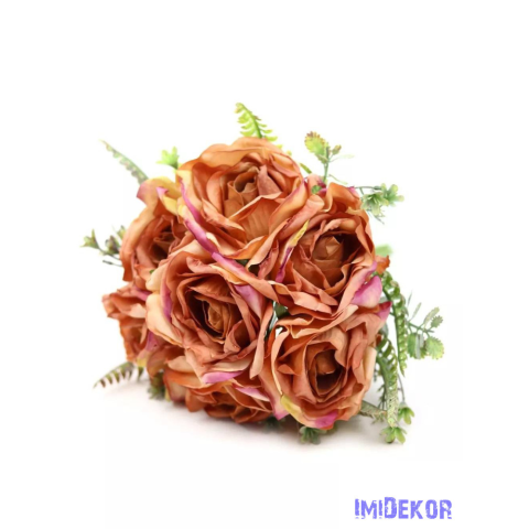 Szárított hatású rózsa csokor 7 ágú 30 cm - Barna dekoráció 1 kép