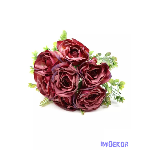 Szárított hatású rózsa csokor 7 ágú 30 cm - Bordó dekoráció 1 kép