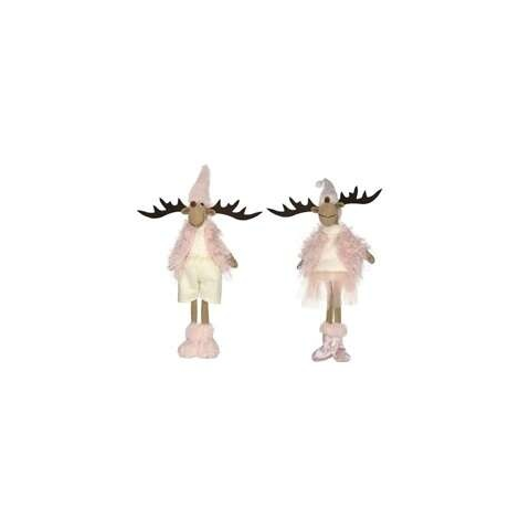 Szarvas fiú, lány álló textil 20.5x13x39cm fehér,rózsaszín 2db karácsonyi dekoráció 1 kép