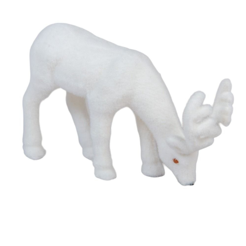 Szarvas lehajtott fejjel flokkolt fehér 8cm