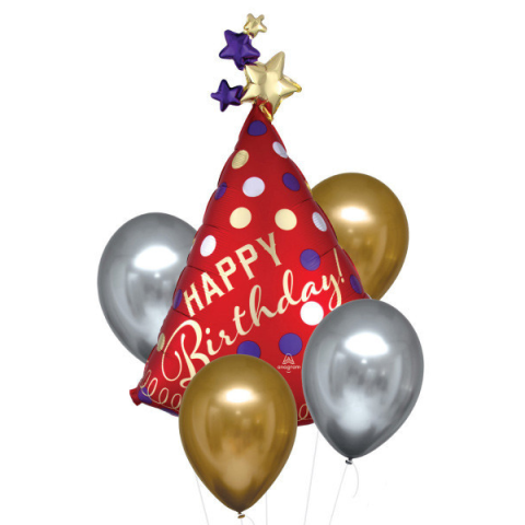 Szatén Happy Birthday fólia lufi 5 db-os szettTartalma:- 1 db fólia lufi - 4 db léggömb A lufi tartó pálca + csésze külön megvásárolható áruházunkban.